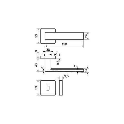 - Ocelová konstrukce rozety v systému FIX IN - pevné sešroubování klik a rozet skrz dveře.