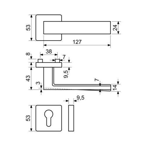- Ocelová konstrukce rozety v systému FIX IN - pevné sešroubování klik a rozet skrz dveře.