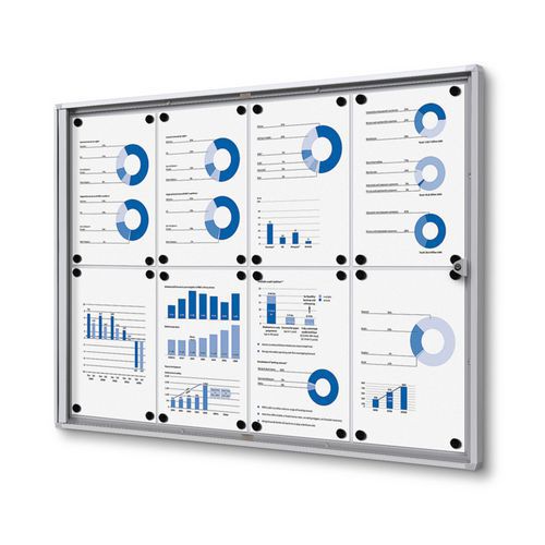 Interiérová vitrína Economy, plechová záda, 8xA4
