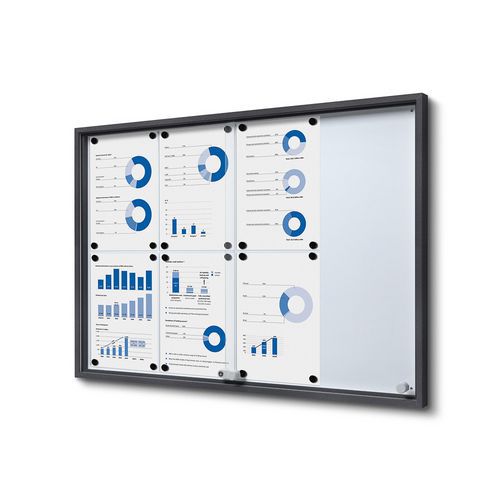 Interiérová vitrína SLIM, posuvné skleněné dveře, plech. záda antracit, 6xA4