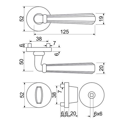 Interiérové kování Firenze.WC, mosaz