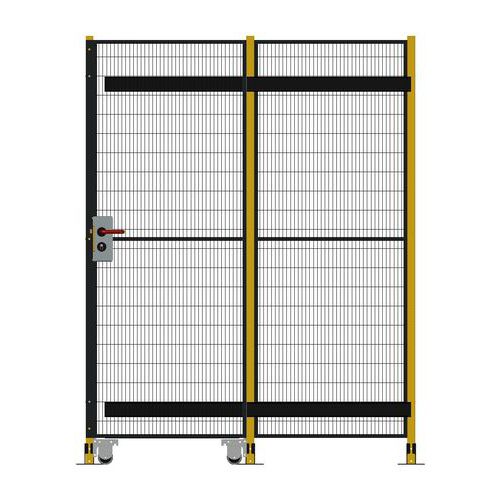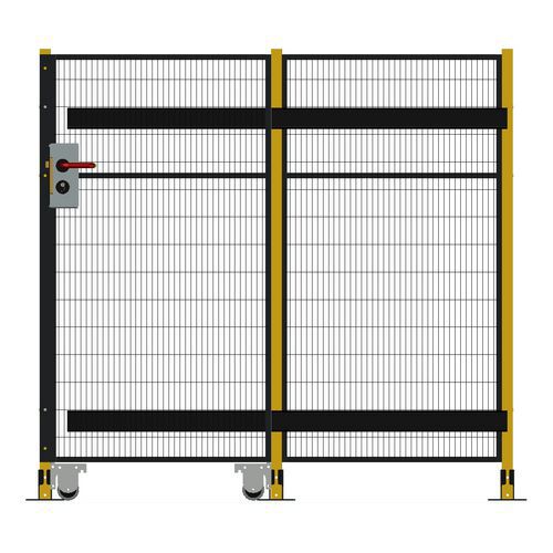 Kompletní jednokřídlé posuvné dveře s cylindrickým zámkem pro systém ochranného oplocení. Cylindrický zámek na klíč umožňuje vstup pouze oprávněným osobám. Teleskopické vedení umožnuje použití dveří s minimálním nárokem na prostor. Bezpečnostní oplocení slouží k zajištění bezpečnosti zaměstnanců a návštěvníků tím, že omezuje přístup do nebezpečných nebo citlivých prostor. Chrání před neoprávněným přístupem osob ke strojům a zařízením, vandalismem a krádežemi. Systém oplocení je navržen a vyroben v souladu s normou EN ISO 14120 a splňuje bezpečnostní požadavky hodnocení rizik.
