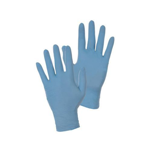 Rukavice z nitrilu pro jednorázové použití. Zdrsněné konečky prstů poskytují dobré pohodlí a citlivost pro jemnou a přesnou manipulaci. Vhodné pro krátkodobý kontakt s potravinami. Rukavice jsou nepudřené. velikost: 7 - 10 materiál: nitril barva: modrá typ: nezateplené povrch: nepovrstvený certifikace: EN 420 balení: 100 ks