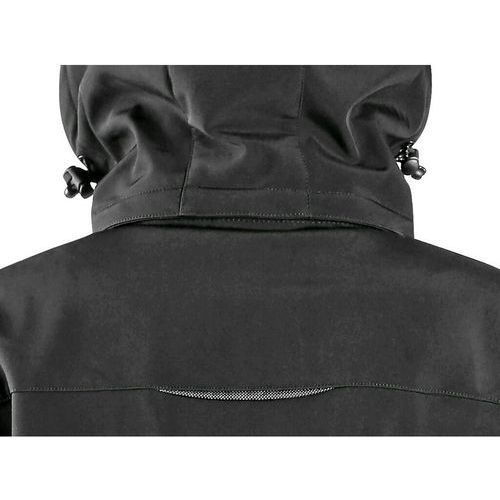 Dámský softshellový kabát s odepínací kapucí, odolný proti vodě a větru, zapínaní na zip, rukávy s vnitřními manžetami, stahování v dolním okraji, spodní kapsy na zip, relfexní doplňky, TPU membrána, odolnost materiálu proti průniku vody 10 000 mm mi Velikost: XS-2XL Svrchní materiál: 96 % polyester 4 % elastan Podšívka: 100 % polyester - velur Voděodolnost: 10 000 mm Paropropustnost: 3 000 g/m2/24hod TPU membrána: ANO Reflexní doplňky: Ano Barevnost: Černá