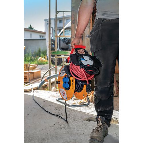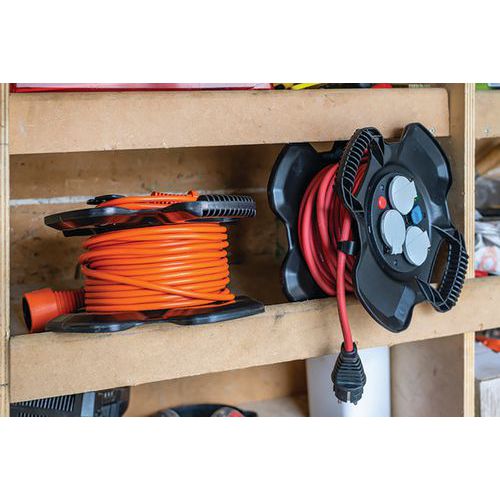 - Kabelový naviják X-GUM se 3 zásuvkami a samouzavíracími klopami.