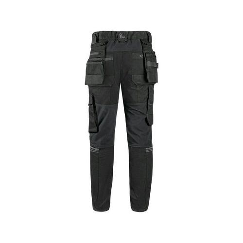 Pánské pracovní kalhoty moderního střihu slim-fit. Kombinace kvalitního směsového materiálu s elastanem a 4-way stretch materiálu v exponovaných místech umožňuje volný a pohodlný pohyb. Vybavení kalhot: flexibilní pas s možností upravení velikosti a poutky na opasek, na vnitřní straně pasu protiskluzový potisk, 2 přední kapsy, 2 odnímatelné kapsy na nářadí vyztuženy materiálem CORDURA®, stehenní zipové kapsy s možností ventilace, boční kapsa se zipovou kapsou, 2 zadní kapsy (jedna zipová) vyztuženy materiálem CORDURA®, kapsa na skládací metr s dalšími přihrádkami, ergonomicky tvarovaná kolena zesílena materiálem CORDURA® s možností vložení kolenních výztuh bočním vkládáním a ventilací, kapsa na ID kartu, spodní část nohavic vyztužena materiálem CORDURA®, reflexní doplňky. Kalhoty jsou vybaveny EASY-PROLONG systémem, který umožňuje snadné prodloužení střihu na vyšší postavu uvolněním švu na nohavicích. Doporučené použití: strojírenství, stavebnictví, lehký průmysl, automobilový průmysl,
