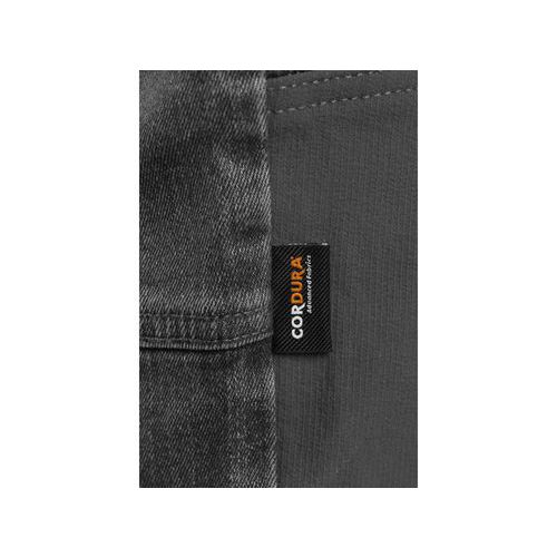 Pánské strečové džíny s užším moderním střihem nohavic. Exponovaná místa jsou vyztužena materiálem CORDURA®, který je odolný a přitom elastický, a díky tomu neomezuje v pohybu. V pase jsou poutka na opasek s plastovým přívěskem a poutkem na kladivo. Kalhoty jsou vybaveny předními i zadními kapsami, levou stehenní kapsou s klopou a pravou multifunkční kapsou s CORDURA® materiálem. Velikost: 46-62