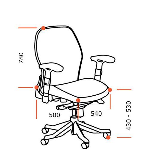 Ergonomicky tvarované kancelářské křeslo s výraznou bederní opěrkou a bakteriostatickým potahem je vybaveno houpacím mechanismem, který lze aretovat v základní poloze nebo blokovat ve zvolené pozici s nastavením síly protiváhy dle váhy uživatele. Součástí křesla jsou pevné područky, plynový píst a kvalitní nylonový kříž s kolečky pro měkké povrchy. Celočalouněné křeslo nabízíme ve čtyřech barevných variantách. Nosnost křesla je 130 kg.