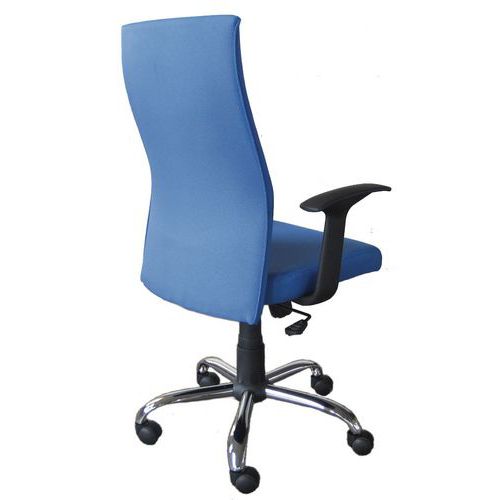 Kolečkové křeslo Hera přináší souhru moderního designu a ergonomie. Pevné područky spolu s houpacím mechanismem, s možností zablokování ve zvolené poloze, zaručují pohodlnost sezení. Židle je vhodná jak domů, tak do kancelářských místností k počítači. O stabilitu se stará chromovaný rám s plastovými koly, určenými pro měkké povrchy. Nastavení výšky sedu se provádí pomocí plynového pístu.