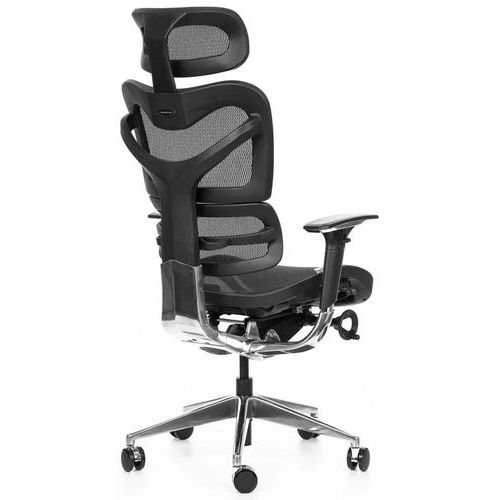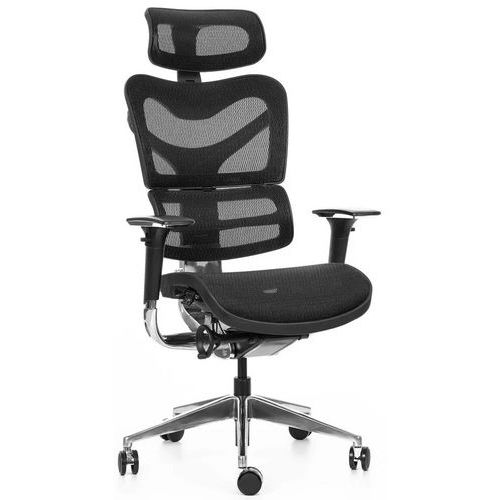 Součástí židle je rovněž výškově nastavitelná hlavová opěrka a 3D područky.