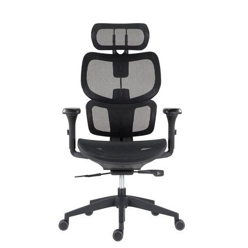 Ergonomická prodyšná židle s černou samonosnou síťovinou na zádovém opěráku i sedáku.