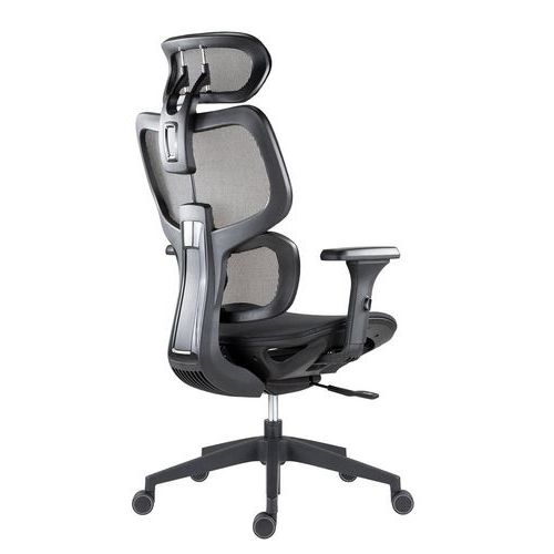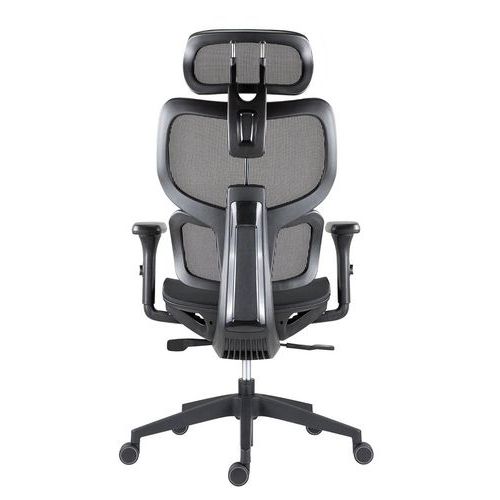 Síťovaná opěrka hlavy s unikátním synchronním polohováním a nastavením výšky - při záklonu opěradla se podhlavník vysouvá vpřed a udržuje pozici bez zaklonění hlavy. Nastavení výšky opěrky v rozpětí 50 mm.