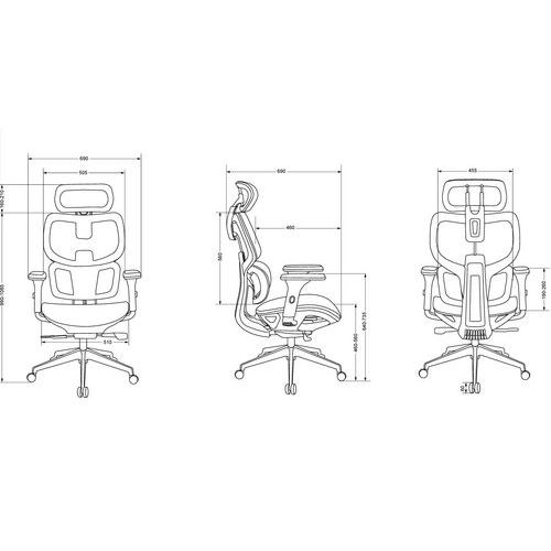Područky jsou 3D s nastavením výšky celých područek a posuvem podloketek.