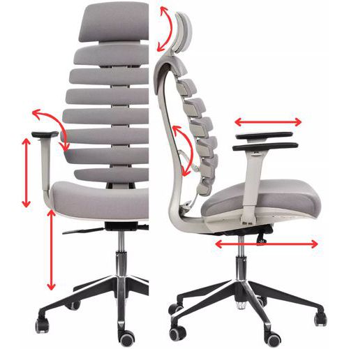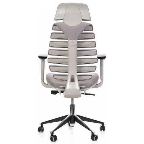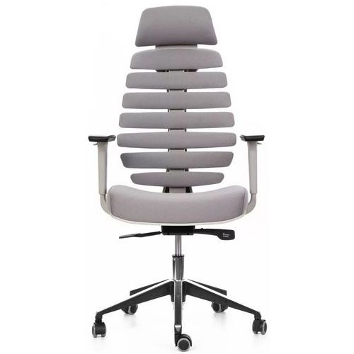 Kancelářská židle Fish Bones s podhlavníkem a šedou konstrukcí.