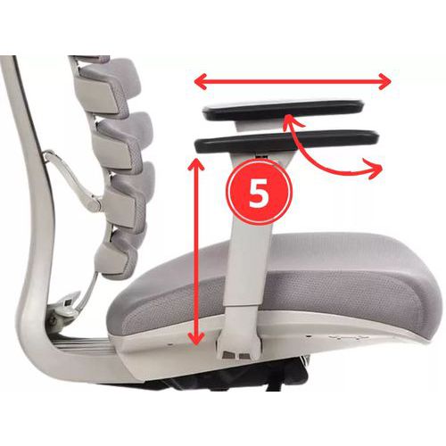 Součástí je výškově nastavitelná hlavová opěrka a 3D nastavitelné područky s měkkou dotykovou plochou.