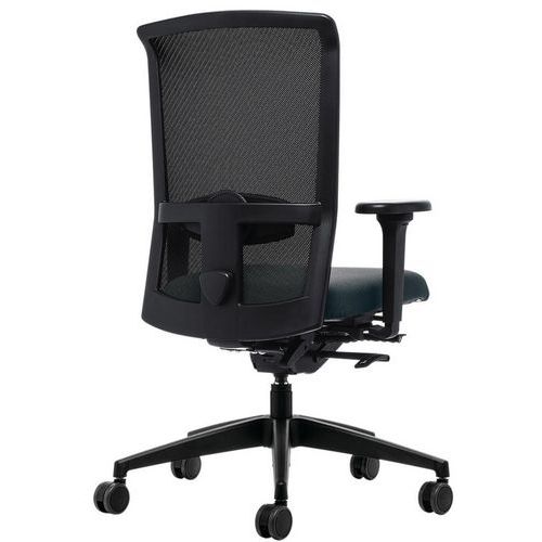 Kancelářská židle s vysokým polstrovaným opěradlem, které lze aretovat v přední i zadní poloze.