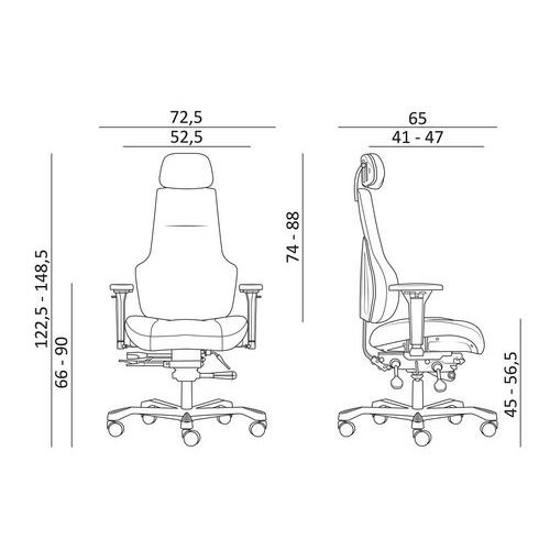 - Kancelářská židle pro intenzivní používání 24/7 speciálně konstruovaná pro malé ale i vysoké a těžké postavy (nosnost až 200 kg).