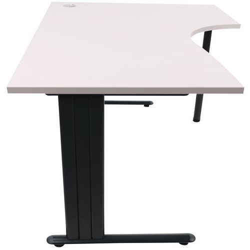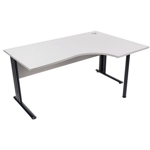 - Psací stoly Manutan Expert s deskou z melaminového panelu o tloušťce 25 mm a s kovovým podnožím.