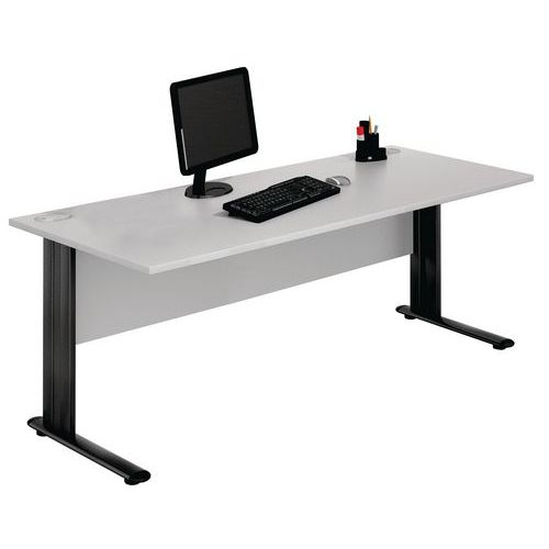 - Kancelářské stoly ve světle šedém provedení s deskou z melaminových panelů o tloušťce 25 mm.
