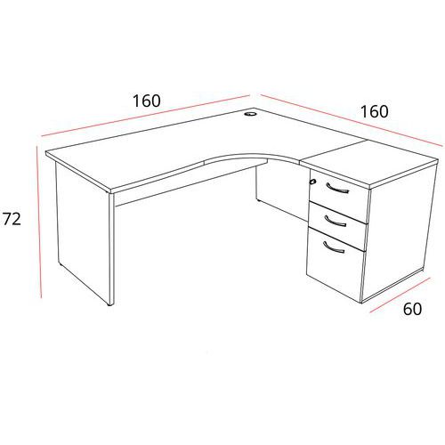 - Kancelářské psací stoly s kontejnerem jsou dostupné v pravém i levém provedení.