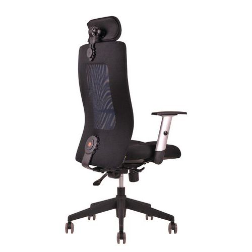 Moderní kancelářská židle se synchronním mechanismem a síťovaným povrchem zajišťujícím celodenní větrání zad. Opěrák má nadstandardní výšku a jeho výhodou je anatomické tvarování. Sedák kancelářského křesla je vyroben ze studené pěny zaručující vysokou životnost a zachovávající anatomický tvar sedáku. Možnost nastavení výšky sedáku, ale i fixace sedáku a opěráku. Otočné židle jsou opatřeny kolečky s měkčeným povrchem vhodné pro tvrdé podlahy i kobercové krytiny. Výběr ze sedmi barevných provedení. Nosnost této otočné židle je 130 kg. Možnost dokoupení opěrky hlavy.