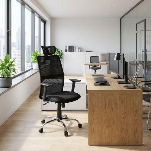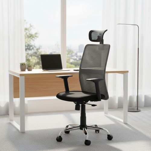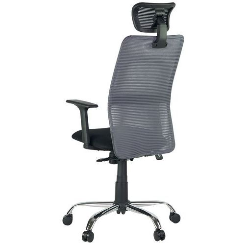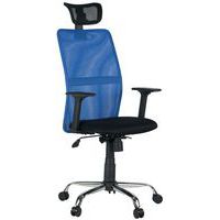 Kancelářské židle jsou opatřeny síťovaným opěrákem a pohodlným textilním sedákem s houpací mechanikou a kovovým křížem.