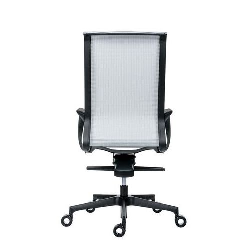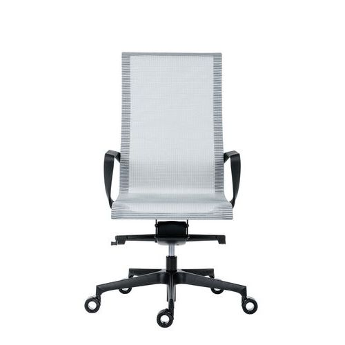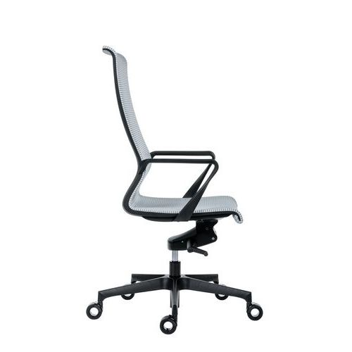 Opěrák i sedadlo ze síťoviny, která je vyrobená z polyesteru a nylonu.