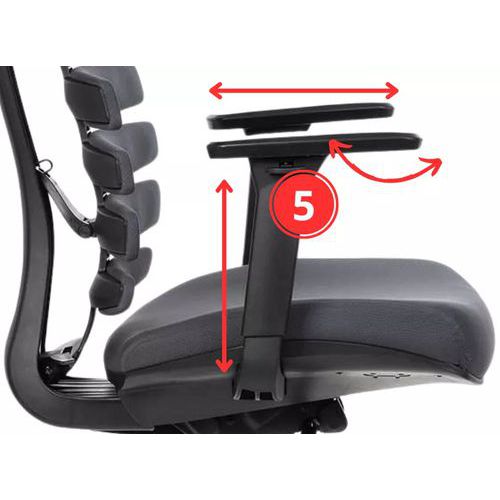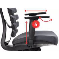 Součástí je výškově nastavitelná hlavová opěrka a 3D nastavitelné područky s měkkou dotykovou plochou.