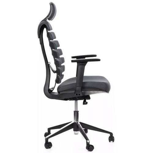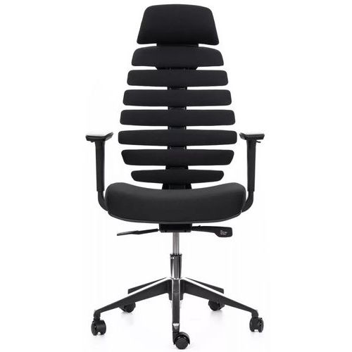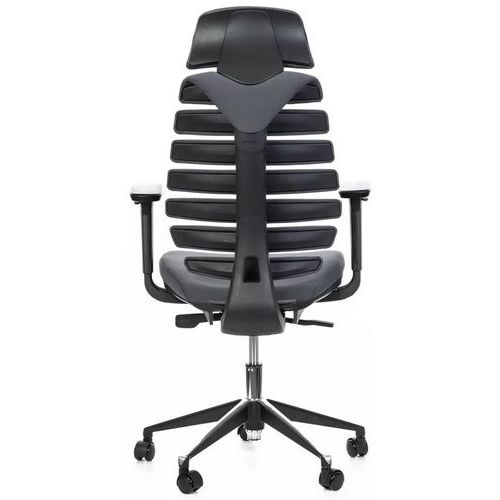 Kancelářské židle Fish Bones s podhlavníkem a černou konstrukcí.
