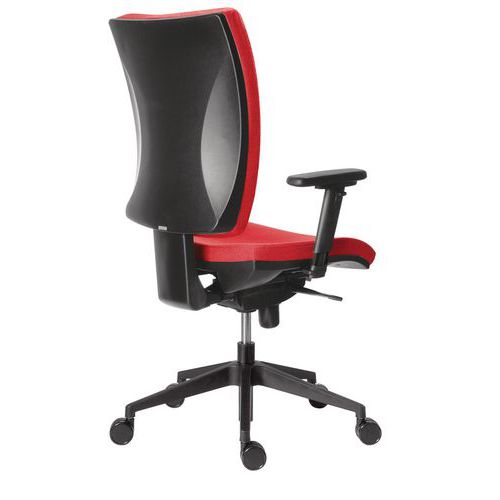 Designová kancelářská židle s prošívaným čalouněním a synchronní mechanikou s pětinásobnou aretací. U židle je možné nastavení tuhosti mechanismu v závislosti na tělesné hmotnosti uživatele. Bederní opěrka, pro správné držení páteře, je součástí opěradla. Výška opěráku se nastavuje systémem up-down. Možnost dokoupení područek. Výšku sedu je možno upravovat plynovým pístem. K dispozici ve třech barevný variantách. Nosnost této otočné židle je 140 kg.
