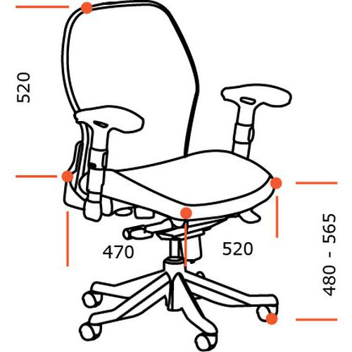 Synchronní mechanika: Zajišťuje neustálý kontakt sedáku i opěráku se zády uživatele. V přesně daném poměru se naklání sedák i opěrák židle a zajišťuje dobrou ergonomii sezení ve všech polohách náklonu. Pohyb mechanismu je možno mechanicky zajistit v požadované pozici. Sílu přítlaku a výšku sezení si uživatel reguluje sám.