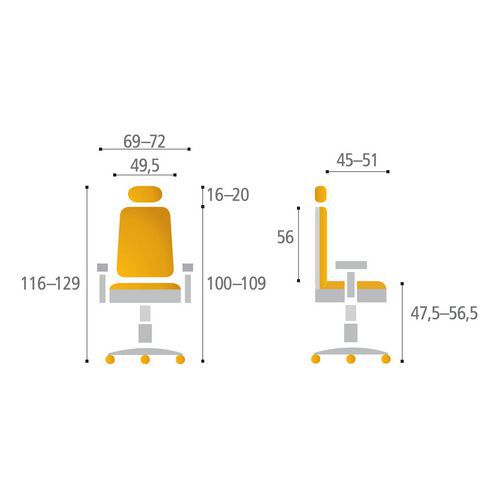 Synchronní mechanika zajišťuje neustálý kontakt sedáku i opěráku se zády uživatele. V přesně daném poměru se naklání sedák i opěrák židle a zajišťuje dobrou ergonomii sezení ve všech polohách náklonu. Pohyb mechanismu je možno mechanicky zajistit v požadované pozici. Sílu přítlaku a výšku sezení si uživatel reguluje sám.