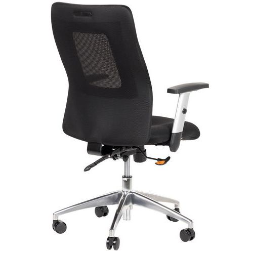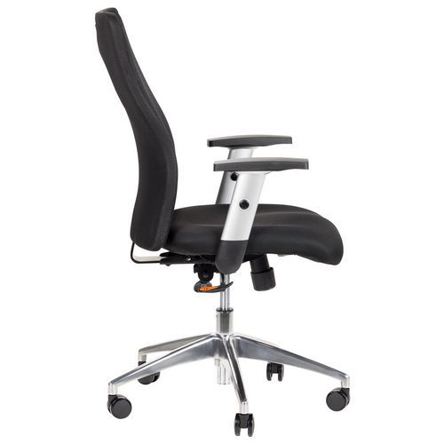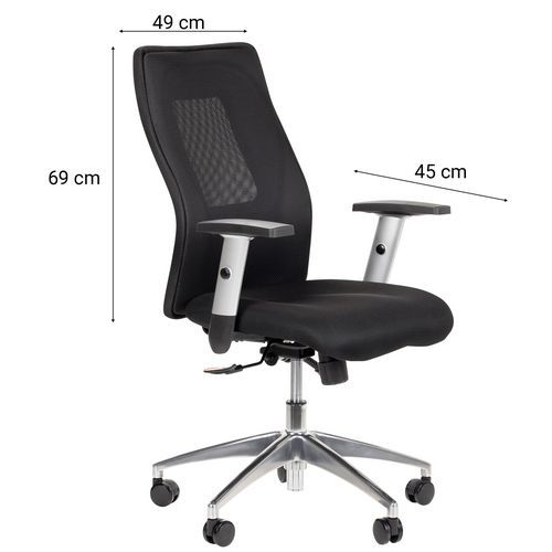 Kancelářské židle jsou opatřeny anatomicky tvarovaným sedákem a síťovaným opěrákem. Synchronní mechanismus lze zafixovat v jakékoli poloze. Možnost nastavení síly protiváhy, výšky sedáku a výšky područek. Židle je opatřena univerzálními kolečky pro tvrdou podlahu i koberec. Možnost dokoupení stavitelné opěrky hlavy.