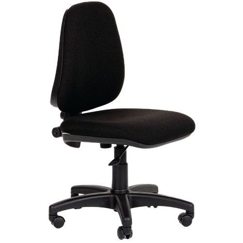 Čalouněné kancelářské židle se zádovou mechanikou zajišťující permanentní kontakt zad s opěradlem. Možnost nastavení aretace sklonu opěradla či jeho trvalý přítlak dle potřeby uživatele. Výšku sedu lze upravovat plynovým pístem. Židle jsou rovněž opatřeny pětiramenným plastovým otočným křížem s kolečky určenými pro měkké krytiny. Opěradlo židlí umožňuje nastavení hloubky a výšky. Možnost výběru z šesti barevných provedení. Nosnost této otočné židle je 110 kg. barva sedáku: antracit, černá, červená, modrá, šedá, vínová barva opěradla: antracit, černá, červená, modrá, šedá, vínová barva konstrukce: černá materiál sedáku: textil materiál opěradla: textil materiál kříže: plast mechanika: permanentní kontakt nosnost: 110 kg rozměry sedáku š x h: 46 x 46 cm výška sedáku: 44 - 55 cm výška opěradla: 48 cm područky: ne odolnost: standardní (40 000 cyklů) nastavitelná výška a hloubka opěradla, dodáváno v rozloženém stavu, plynový píst Mechanika Permanentní kontakt: Mechanika zajišťuje neustálý kontakt opěradla se zády uživatele díky pohyblivé opěrce. Umožňuje zajistit vhodný sklon opěradla ve zvolené poloze. Mechanismus obvykle nabízí také možnost nastavit si výšku opěradla a výšku sezení. Sedák je vždy statický.