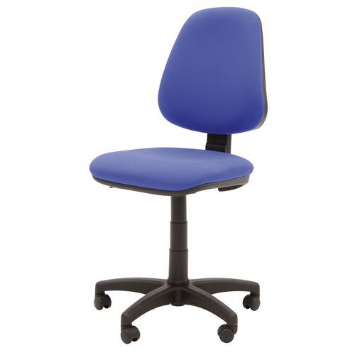 Čalouněné kancelářské židle se zádovou mechanikou zajišťující permanentní kontakt zad s opěradlem. Možnost nastavení aretace sklonu opěradla či jeho trvalý přítlak dle potřeby uživatele. Výšku sedu lze upravovat plynovým pístem. Židle jsou rovněž opatřeny pětiramenným plastovým otočným křížem s kolečky určenými pro měkké krytiny. Opěradlo židlí umožňuje nastavení hloubky a výšky. Možnost výběru z šesti barevných provedení. Nosnost této otočné židle je 110 kg. barva sedáku: antracit, černá, červená, modrá, šedá, vínová barva opěradla: antracit, černá, červená, modrá, šedá, vínová barva konstrukce: černá materiál sedáku: textil materiál opěradla: textil materiál kříže: plast mechanika: permanentní kontakt nosnost: 110 kg rozměry sedáku š x h: 46 x 46 cm výška sedáku: 44 - 55 cm výška opěradla: 48 cm područky: ne odolnost: standardní (40 000 cyklů) nastavitelná výška a hloubka opěradla, dodáváno v rozloženém stavu, plynový píst Mechanika Permanentní kontakt: Mechanika zajišťuje neustálý kontakt opěradla se zády uživatele díky pohyblivé opěrce. Umožňuje zajistit vhodný sklon opěradla ve zvolené poloze. Mechanismus obvykle nabízí také možnost nastavit si výšku opěradla a výšku sezení. Sedák je vždy statický.