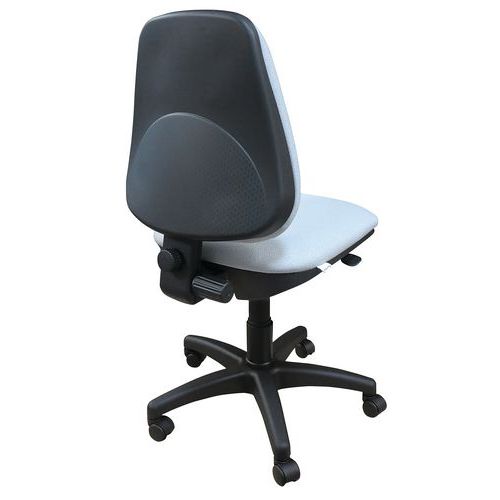 Čalouněné kancelářské židle se zádovou mechanikou zajišťující permanentní kontakt zad s opěradlem. Možnost nastavení aretace sklonu opěradla či jeho trvalý přítlak dle potřeby uživatele. Výšku sedu lze upravovat plynovým pístem. Židle jsou rovněž opatřeny pětiramenným plastovým otočným křížem s kolečky určenými pro měkké krytiny. Opěradlo židlí umožňuje nastavení hloubky a výšky. Možnost výběru z šesti barevných provedení. Nosnost této otočné židle je 110 kg. barva sedáku: antracit, černá, červená, modrá, šedá, vínová barva opěradla: antracit, černá, červená, modrá, šedá, vínová barva konstrukce: černá materiál sedáku: textil materiál opěradla: textil materiál kříže: plast mechanika: permanentní kontakt nosnost: 110 kg rozměry sedáku š x h: 46 x 46 cm výška sedáku: 44 - 55 cm výška opěradla: 48 cm područky: ne odolnost: standardní (40 000 cyklů) nastavitelná výška a hloubka opěradla, dodáváno v rozloženém stavu, plynový píst Mechanika Permanentní kontakt: Mechanika zajišťuje neustálý kontakt opěradla se zády uživatele díky pohyblivé opěrce. Umožňuje zajistit vhodný sklon opěradla ve zvolené poloze. Mechanismus obvykle nabízí také možnost nastavit si výšku opěradla a výšku sezení. Sedák je vždy statický.