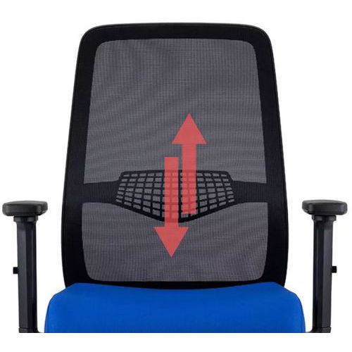 - Kancelářské židle Tulio s černou síťovinou na opěráku bohacené o nastavitelnou bederní výztuhu.