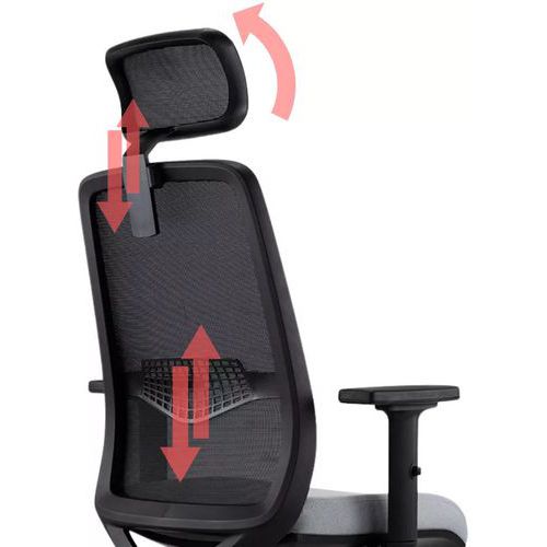 - Kancelářské židle s černou síťovinou na opěráku a bederní výztuhou.