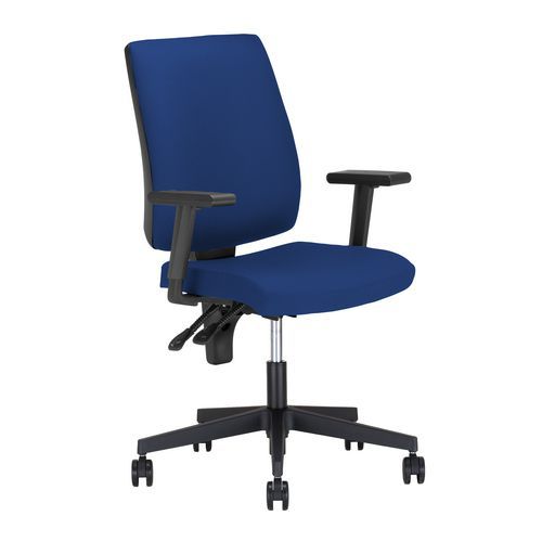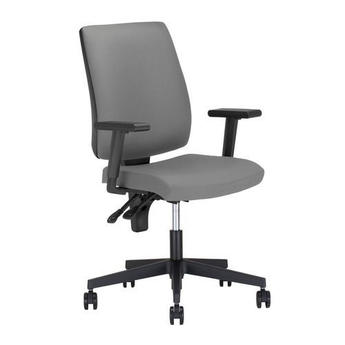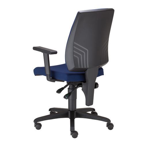 - Čalouněné kancelářské židle s ergonomicky tvarovaným opěrákem, permanentním kontaktem a s možností nastavení sklonu a výšky opěradla.