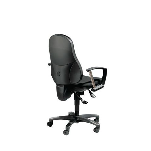 Komfortní kancelářské židle s robustním synchronním mechanismem, který přináší možnost nastavení dle vlastní váhy uživatele. Pohodlné sezení zaručuje tvarovaný opěrák s integrovanou opěrkou bederních obratlů. Stabilitu sezení kancelářského křesla zaručuje kříž s chromovými prvky a samobrzdicí kolečka.