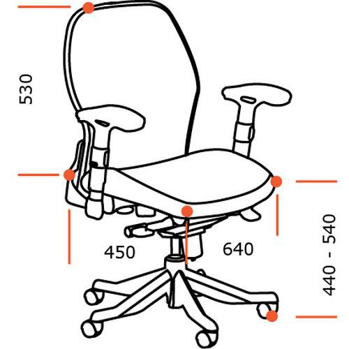 Asynchronní mechanika: Typ mechaniky, která umožňuje nezávislé nastavení úhlu sklonu sedáku a opěráku. Nastavení třemi ovládacími pákami (nastavení výšky celé židle, naklápění sedáku a opěráku s aretací a regulace sklonu opěráku s aretací).