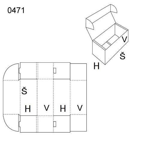 - FEFCO 0471, dodáváno v rozloženém stavu, rychlé složení