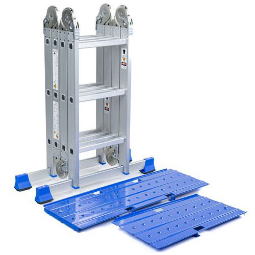 Kloubový hliníkový žebřík Manutan Expert s podlážkou, 4 x 3 příčky