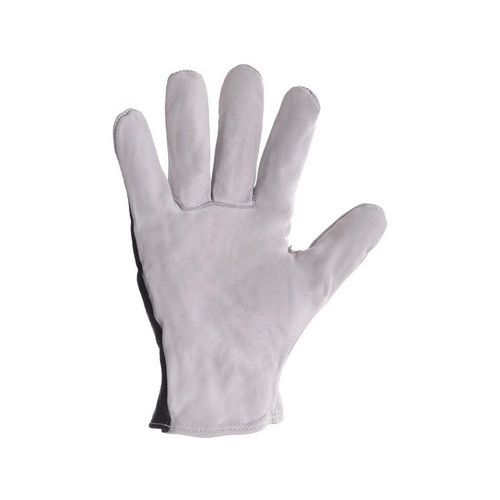 Rukavice se hřbetem z černého pružného úpletu. Doporučené použití: určeno pro suchá i lehce vlhká prostředí. Odvětví: stavebnictví, pneuservisy, logistika a přeprava. Velikost: 8, 9, 10 Piktogramy: 9, 10 Normy: EN 420 Materiálové složení: dlaň - kozinková lícovka, hřbet - bavlněný úplet