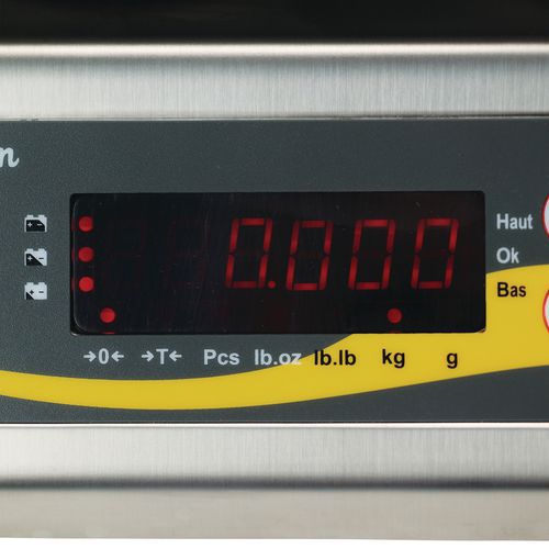 Kompaktní váha z nerezové oceli vhodná pro kontrolu váhy zboží na skladě či v obchodech. Opatřena ochranným krytem odolným vůči prachu a stříkající vodě. Displej s červeným LED podsvícením. Integrovaná dobíjecí baterie pro provoz cca 80 hodin.