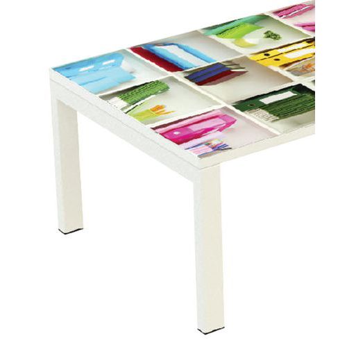 - Obdélníkový konferenční stolek v barevném designu vhodný do kanceláří, vstupních hal aj.