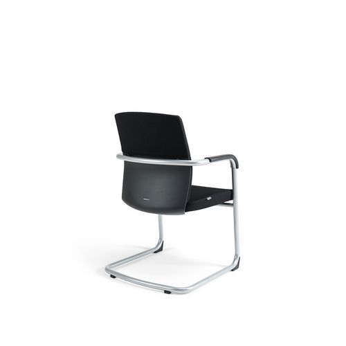 - Konferenční látkové židle s kovovou lyžinovou konstrukcí a integrovanými loketními opěrkami.