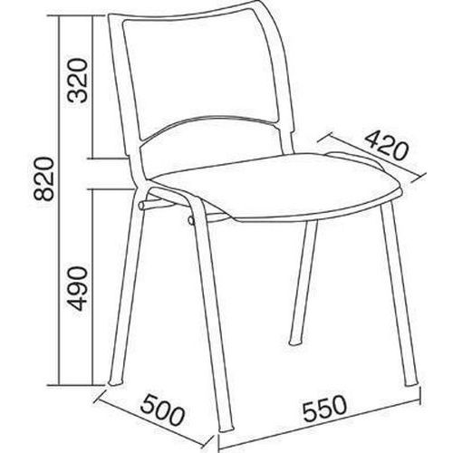 Designové konferenční židle vhodné do konferenčních a zasedacích místností. Sedák i opěrná plocha křesel jsou vyrobeny z houževnatého plastu a potaženy látkou odolnou proti opotřebení. Konstrukci židlí tvoří tenkostěnné oválné trubky s povrchovou úpravou černým práškovým lakem. Možnost výběru ze čtyř barevných provedení. Výhodou židlí je jejich stohovatelnost do 10 ks. Nosnost jednací židle je 110 kg.