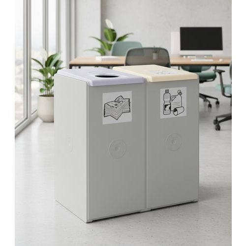 Modulární plastové kontejnery na třídění odpadu. Vyrobené z nárazuvzdorného polyesteru v šedém provedení RAL 7035. Lze zvolit z variant 1, 2, 3 nebo 4 košů. Jednoduché vyprázdnění koše pomocí vnitřní nádoby (není součástí dodání). Možnost doplnění o mobilní podstavu a barevná víka. Dodáváno včetně samolepicích piktogramů pro třídění odpadu.