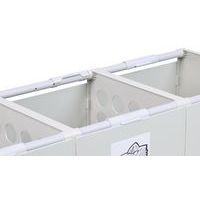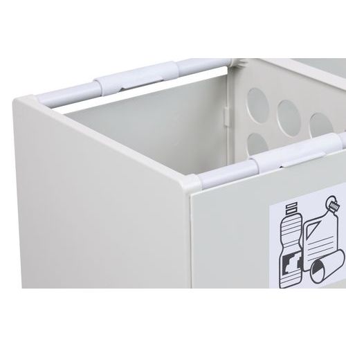 Modulární plastové kontejnery na třídění odpadu. Vyrobené z nárazuvzdorného polyesteru v šedém provedení RAL 7035. Lze zvolit z variant 1, 2, 3 nebo 4 košů. Jednoduché vyprázdnění koše pomocí vnitřní nádoby (není součástí dodání). Možnost doplnění o mobilní podstavu a barevná víka. Dodáváno včetně samolepicích piktogramů pro třídění odpadu.